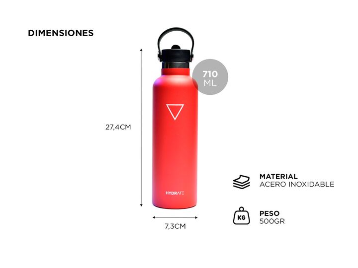 Ya sea en el gimnasio, en la oficina o de paseo, el Termo Hydrate 710ml Frio Calor es el compañero perfecto para mantener tus bebidas a la temperatura ideal durante todo el día. Con un diseño delgado y elegante, este termo de acero inoxidable es práctico y portátil, adaptándose fácilmente al portava...