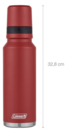 Construido en acero inoxidable 18/8 con triple capa de aislamiento al vacío. Libres de PBA. Rango de conservación de calor superior a 24hs y de frio superior a 50hs. Totalmente a prueba de derrames y fugas. Tapa matera de media vuelta (ceba 360 grados). Altura total 32,5cm. Medida de la base 8,8cm.