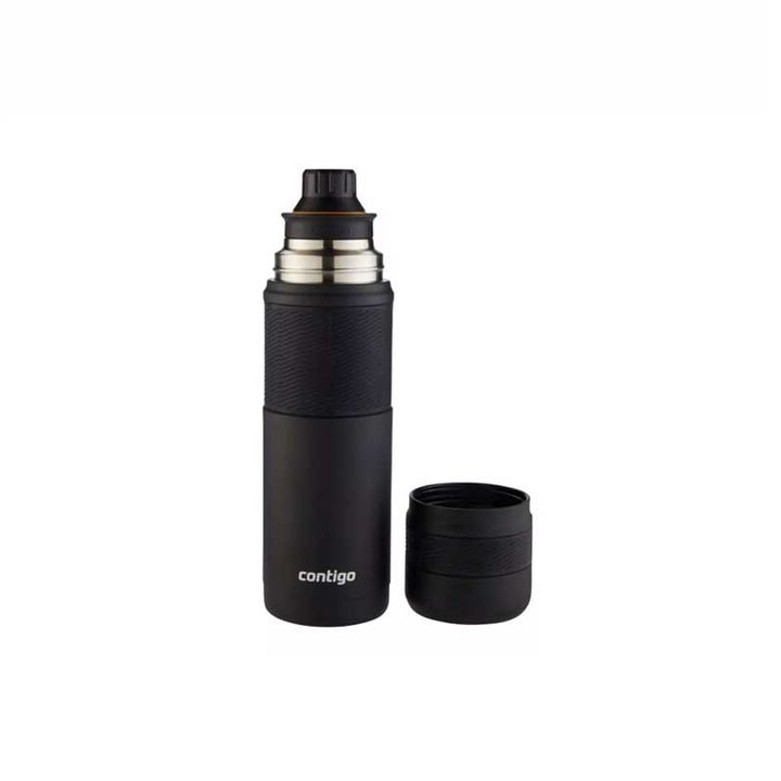 Termo Contigo Thermal Bottle de 739 ml en color negro. Mantiene las bebidas calientes hasta 30 horas y frías hasta 45 gracias a su aislamiento al vacío THERMALOCK™. Su tapa es a prueba de fugas, se abre con un giro de ¼ de vuelta y funciona como taza. Diseño 360° para verter en cualquier ángulo y ta...