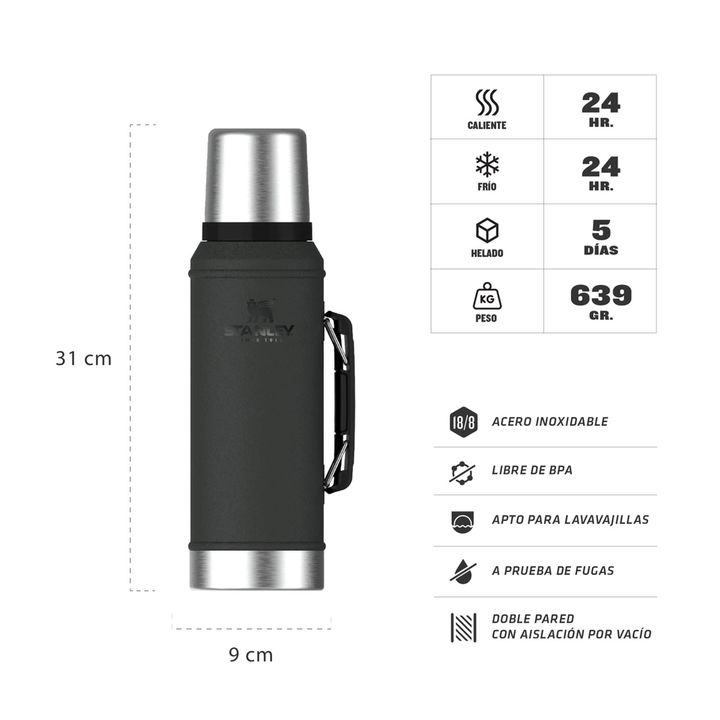 ¿Sos un apasionado de los viajes y aventuras? El icónico Termo Mate Classic de Stanley ha presenciado viajes memorables durante generaciones. Llevá este clásico con vos y disfrutá de momentos compartidos. Esta botella mantiene tus bebidas calientes y frias hasta por 24 horas gracias a la doble pared...