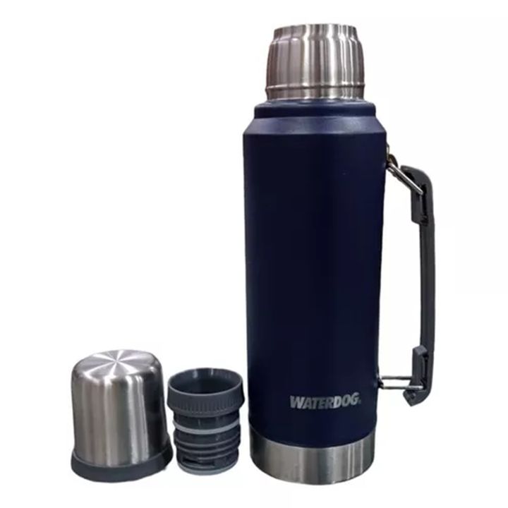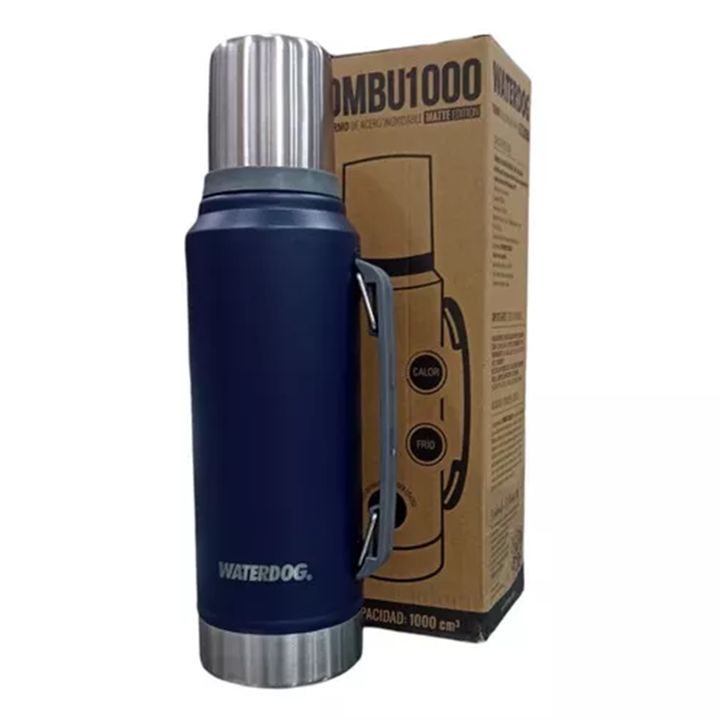 100% Acero Inoxidable. Recubrimiento Powder Coated. Doble pared aislante con superficie antideslizante. Fácil de llenar, gracias a su boca ancha. Higiénica tapa de cierre a rosca. Tapón cebador interior y asa de PP.