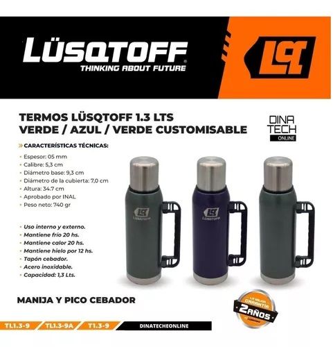 TERMO ACERO INOXIDABLE LUSQTOFF 1.3LT FRIO Y CALOR CON MANIJA T1.3-9 (Sin logo) ¿Necesitás el complemento perfecto para tu kit matero? Experimentá la calidad de este termo Lüsqtoff con el que vas a poder disfrutar de cualquier infusión. Llevalo a donde quieras y tené listo tu café, té, o jugo rápida...