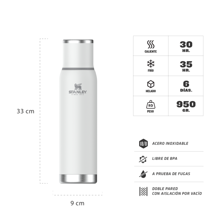 Termo Stanley Adventure To - Go 1.3lts Polar C/tapón Cebador Llévalo al trabajo, llévalo de vacaciones, a tu lugar secreto para surfear, llévalo donde quiera que vayas. La botella Adventure To-Go es perfecta para llevar tus bebidas frías o calientes favoritas, manteniéndolas a la temperatura ideal d...