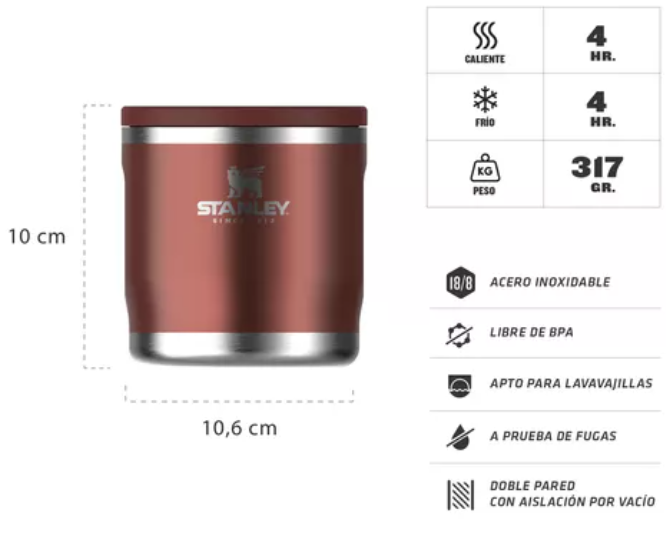 TERMO STANLEY ALIMENTOS ADVENTURE TO-GO 354ML ACERO INOX 10-10837-033 - CLAY Nada sabe tan bien como un almuerzo caliente o un refrigerio frío cuando estás fuera durante el día: en el trabajo o en busca de tu próxima aventura (o empacando la mochila escolar de tu pequeño aventurero). Desde sopa hast...