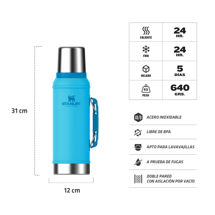 El Termo Mate Stanley Classic 950 ml con Asa y tapon cebador es un producto icónico que ha acompañado a los aventureros al aire libre en Argentina durante generaciones. Este clásico termo Stanley de 1L ha sido una parte integral de la vida de muchas personas, permitiéndoles disfrutar de bebidas cali...