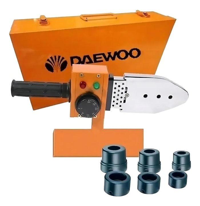 TERMOFUSORA DAEWOO DAPW63CP AGUA GAS 800W BOQUILLAS MALETIN Potente termofusora de 800 Watts. Ideal para tareas en termofusión de caños de polipropileno. Debido al diseño estrecho de la puntera, resulta ideal para trabajos de reparación, minimizando la rotura de mampostería en lugares estrechos o de...