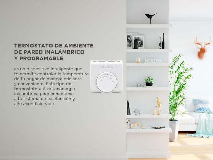 Gadnic presenta el nuevo termostato de pared Un termostato de ambiente de pared inalámbrico y programable es un dispositivo inteligente que te permite controlar la temperatura de tu hogar de manera eficiente y conveniente. Este tipo de termostato utiliza tecnología inalámbrica para conectarse a tu s...