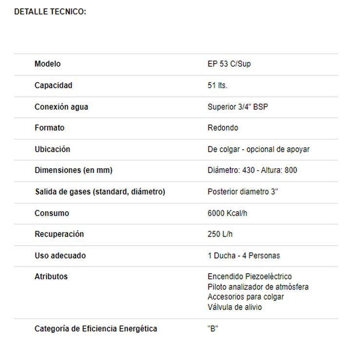 Termotanque A Gas A.recuperacion Ep 53 G.e-conexion Sup Ecotermo Teco2es053