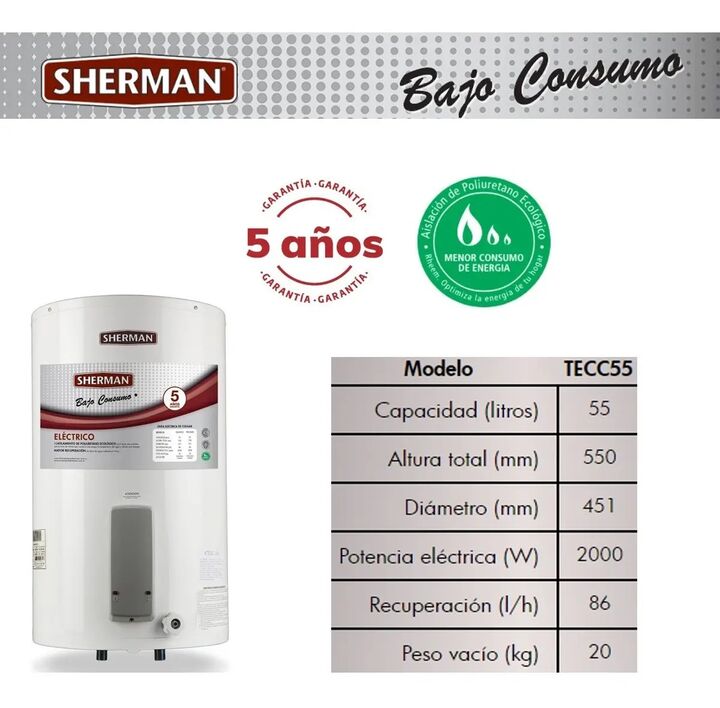 Termotanque Eléctrico De Colgar 55 Litros - Conexión Inferior