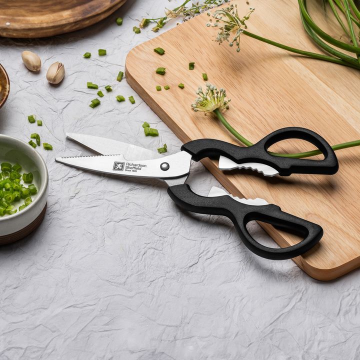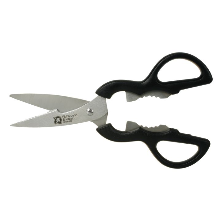 Tijera de cocina Multiuso ARTISAN - Richardson Sheffield TIJERA DE COCINA ACERO INOXIDABLE Material: Metal y Acero Inox Acero Inox 410 Plastico Pom - Poliacetal Dimensión: 21 X 8,5 X 1 CM Color: Negro Características Técnicas: Mango remachado Consejos de limpieza: Apto lavavajillas Para un uso durad...