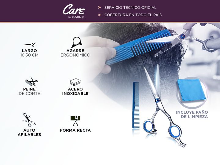 ¡Nuevo Set Tijera Profesional Shivy + Peine Care By Gadnic! Las tijeras tienen hojas afiladas que son convexas desde el exterior y cóncavas desde el interior, lo que brinda la máxima nitidez y durabilidad. Se pueden utilizar tanto para cabello húmedo como seco. Son tijeras ideales para salón y uso d...