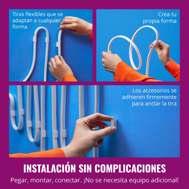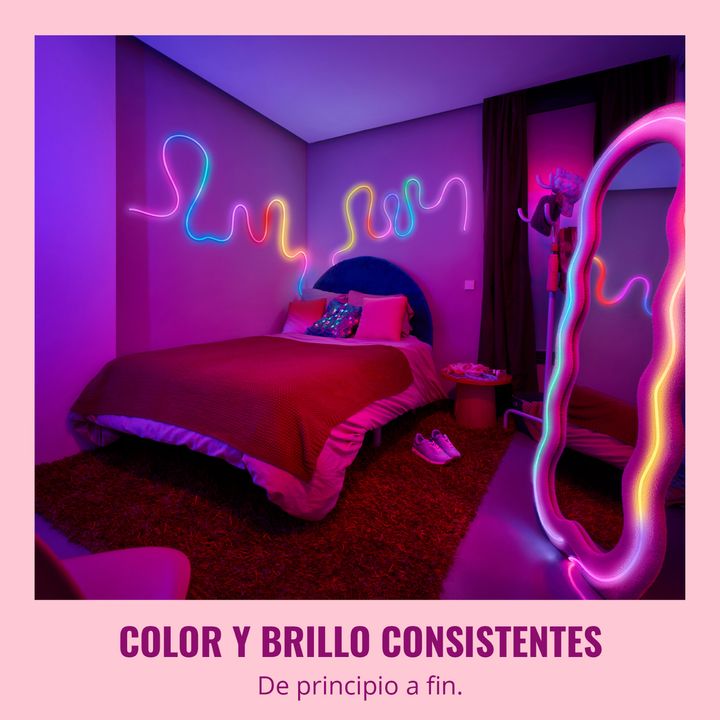 Crea formas fascinantes con el diseño flexible de Smart Flex Strip, que da un toque de estilo a cualquier habitación. Gracias sus efectos y colores vibrantes, puedes crear fácilmente el ambiente perfecto para cualquier ocasión. Ya sea a través de la aplicación WiZ, comandos de voz o mando a distanci...