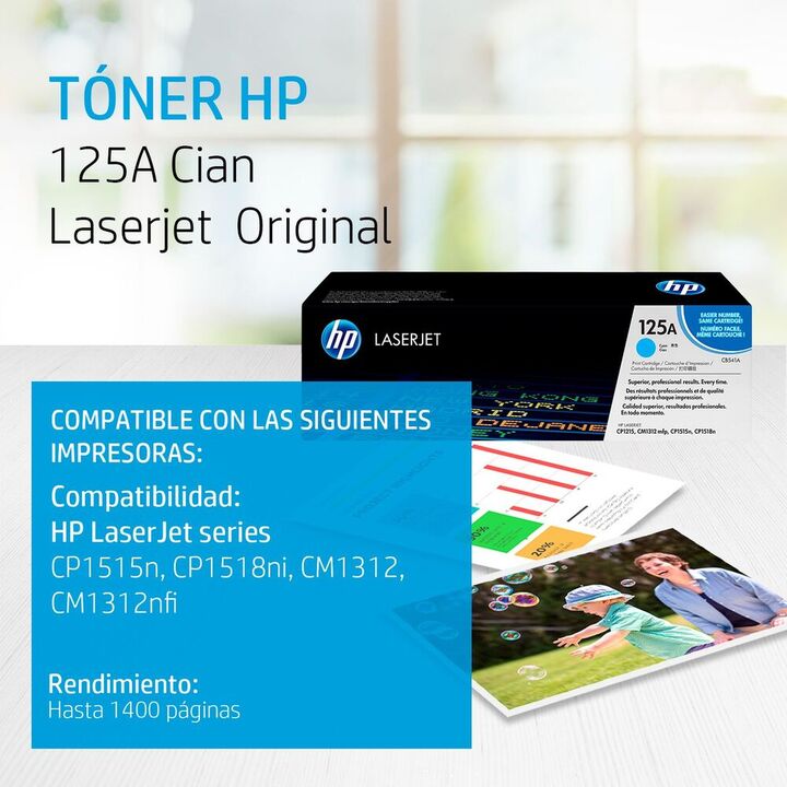 Tóner Hp 125a Cian Laserjet Original CB541A Logre que su empresa llame la atención. Con nuestro tóner HP ColorSphere más moderno, obtenga calidad de impresión profesional directamente en su oficina: color vivo, llamativo, texto nítido y calidad fotográfica realista. Y mantenga la máxima productivida...