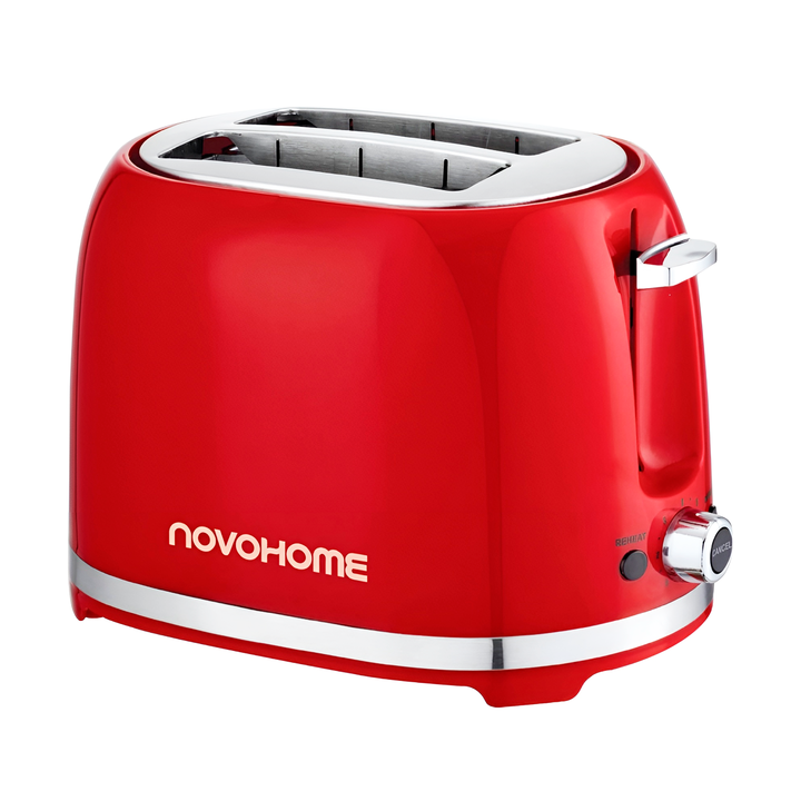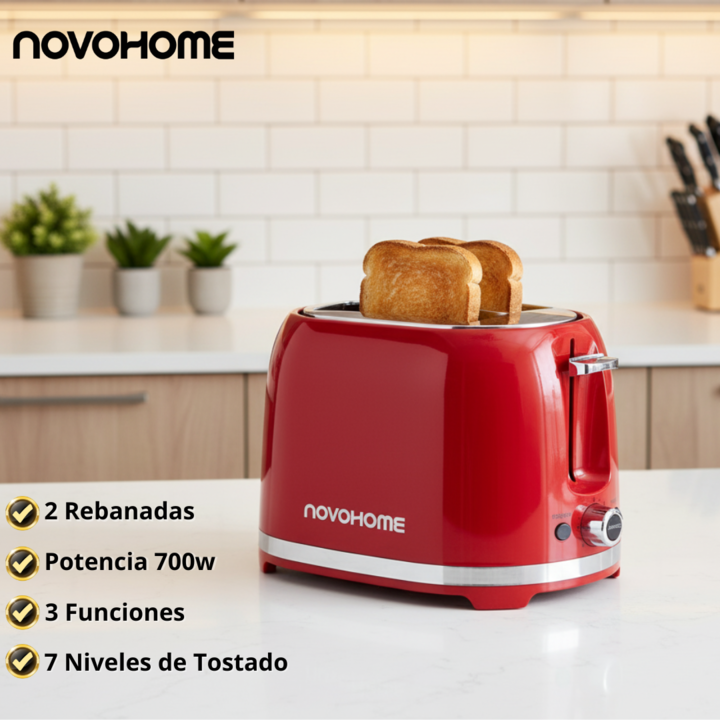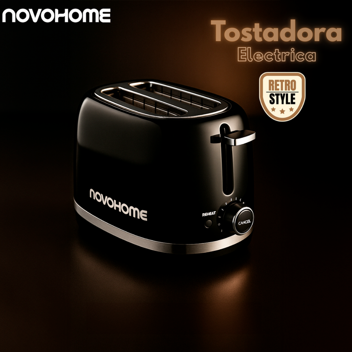NOVOHOME TOSTADORA 2 BAHIAS 700W SKU:NH-TO027 (NEGRA) SKU: NH-TO028 (ROJA) REVIVE EL SABOR DEL AYER, CADA MAÑANA Despierta tus mañanas con un toque de nostalgia. Nuestra tostadora de 2 reparadas combina un diseño retro irresistible con la eficiencia de la tecnología actual. Perfecta para darle carác...