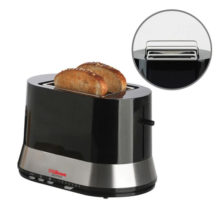 TOSTADORA DECOTOSTSoporte metalico Ideal para calentar medialunas y pan. 7 niveles de tostado. Funcion calentar descongelar y cancelar. Bandeja recolectora de migas. Eyector automatico. Paredes frias. Enrollacable. Potencia 800 watts.