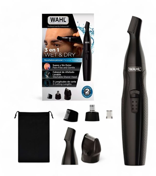 WAHL NOSE TRIMMER 3 EN 1 CON 3 CABEZALES A PILA SKU: 5608-1328 Descripción TRIMMER WAHL 3 EN 1 WET & DRY Recortadora personal a batería con 3 cabezales intercambiables faciles de cambiar y limpiar. Se puede enjuagar para una fácil limpieza. Liviano, suave y sin dolor. Para uso en cejas, nariz, cuell...