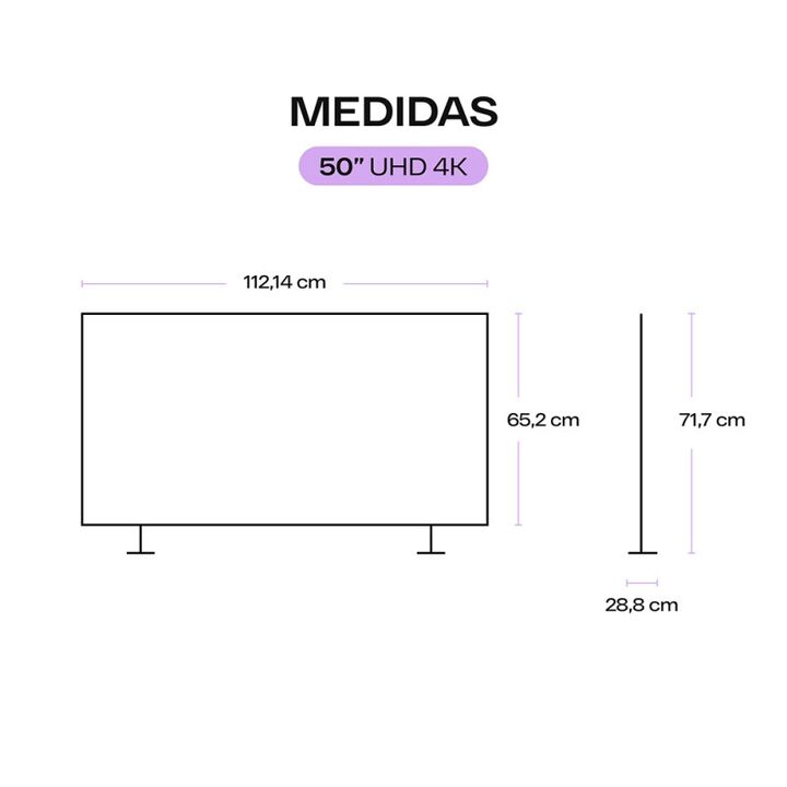 TV 50 SMT 50 UHD QT-50UHD20312-257 GOOGLE TV - QT-50UHD20312-257 -Especificaciones - Frame: Slim Edge Design -Resolucion: 4K Ultra HD - Sistema Operativo GOOGLE TV -Aplicaciones destacadas (+10.000 Apps) Netflix, YouTube, Disney+, Prime Video -Potencia de parlantes: 2¦_10W -Display Resolution UHD (3...