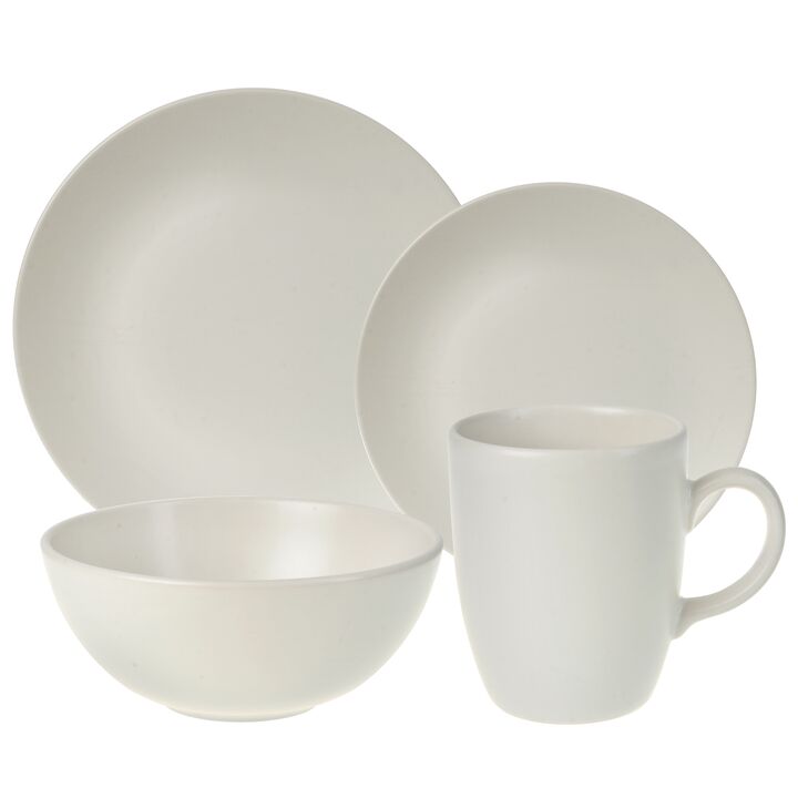 Set de vajilla de ceramica en color Blanco Mate Compuesto por : - 4 platos playos de 25 cms , Altura : 2,5 cm - 4 platos postre de 20 cm , Altura : 2 cm - 4 bowls de 14 cm , Altura : 5,5 cm - 4 Jarros Mug de 10 cm , Diametro boca : 7,6 cm , Capacidad : 280 ml Terminacion MATE ( no tiene brillo) Cera...