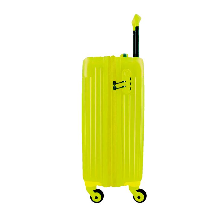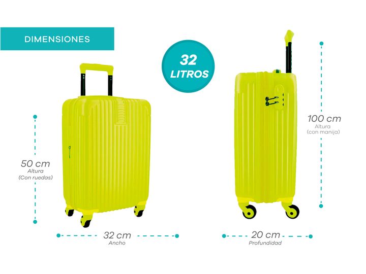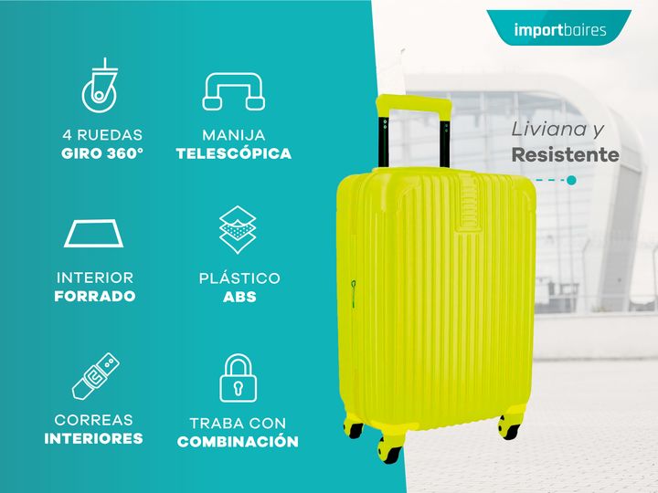 VALIJA 18 CHICA DE CABINA PLASTICO ABS RIGIDO CON CANDADO DE COMBINACIÓN · Cuatro ruedas de PVC reforzadas en el eje 360° · Cierres reforzados · Ideal para viajes cortos · Elástico interno con traba para sujetar las pertenencias · 100% Plástico ABS · Traba candado con combinación integrada para los ...