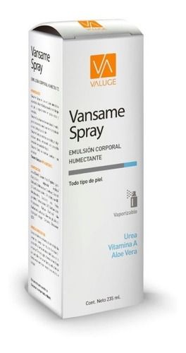 Vansame Spray Emulsión Humectacion Intensiva Urea 5% 235ml Emulsión humectante Sprayable. La humectación vuela al cuerpo del paciente. Contiene Urea 5%, Crodamol, Vitamina A y Aloe Vera. La urea es una de las sustancias que produce la piel de manera natural, para regular la cantidad de humedad. Son ...