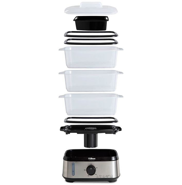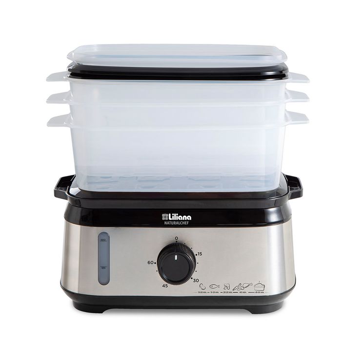 La vaporera AV925 de Liliana cuenta con un práctico diseño, con bases desmontables que permiten ampliar la superficie de cocción, con bandejas, tapa y base apilables con enrolla cable para facilitar el guardado de la misma. Cuenta con un panel manual para ajustar fácilmente el tiempo de cocción hast...