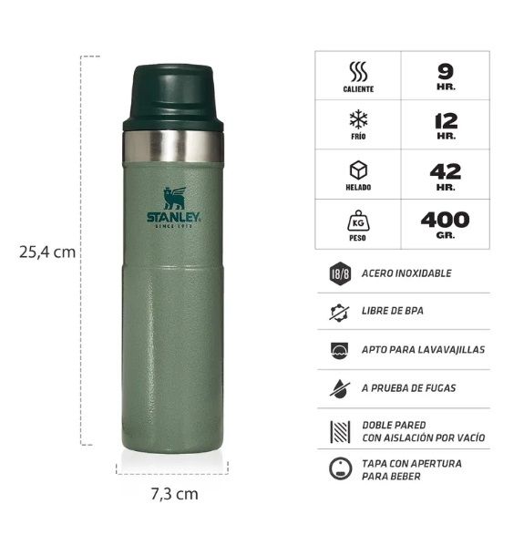 El vaso térmico Stanley One Hand 591 ml es un infaltable para aquellos que necesitan llevar su café, té o bebida favorita con ellos en cualquier lugar.
