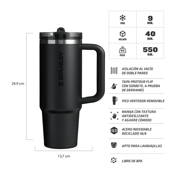 Vaso Stanley Quencher Protour Flip Straw 887Ml - Black 2.0