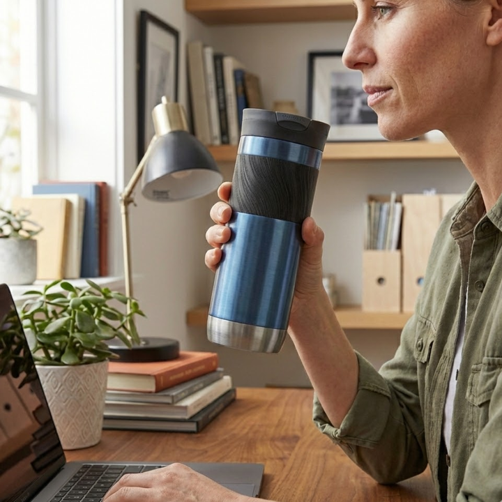 Vaso Térmico Contigo Byron BlueBerry 710ml Tu compañero cotidiano: ¡aprovéchalo con SnapSeal! Esta taza de trabajo duro le permite abrir y cerrar la tapa para que quede sellada cuando termine de beber. También te encantará que mantendrá tu café matutino caliente durante horas, para que puedas llevar...