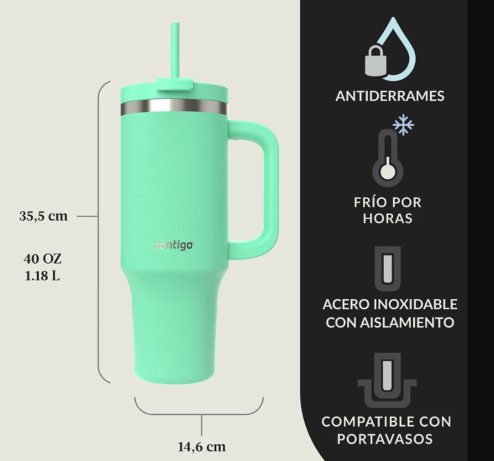 El estilo clásico se une a la funcionalidad avanzada en el termo Contigo Streeterville de 1.18 L. Este diseño atemporal tiene un toque moderno con una tapa multifuncional que te permite beber con o sin tubo de succión. No importa cómo prefieras, el Streeterville de 1.18 L es completamente a prueba d...