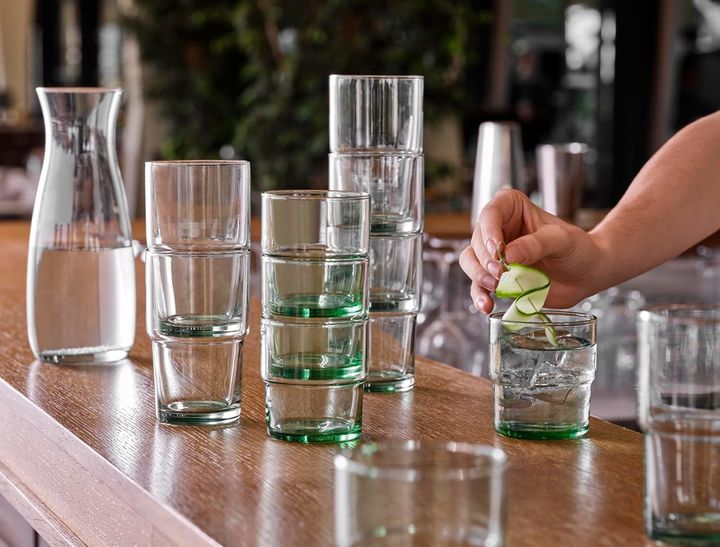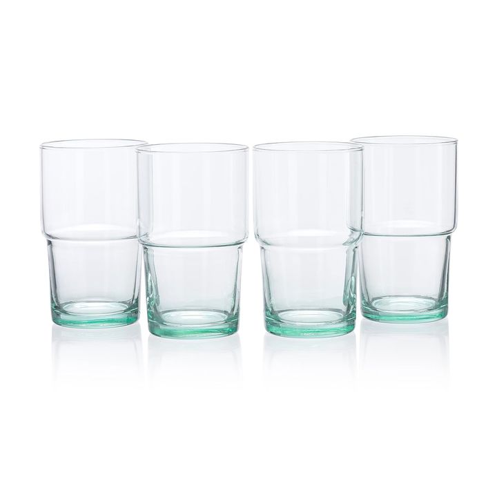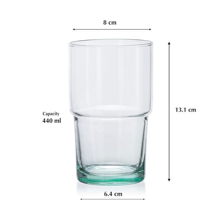 Set compuesto x 4 vasos de vidrio Reciclados Apilables Capacidad : 440 cc Medidas : Altura : 13,1 cms / Diametro boca : 8 cms / Diametro base : 6,4 cms Marca : PASABAHCE 100% VIDRIO RECICLADO Vidrio 100% Reciclado* Lleva la forma de la serie más preferida: Básica. Fácil agarre con asa Ideal para ser...