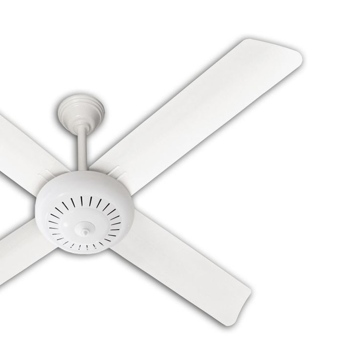 Ventilador de techo con palas de acero, color blanco. Motor asincrónico monofásico 220 V 50 Hz 80 W, de gran rendimiento y bajo consumo. Montado sobre rodamientos blindados, de alta confiabilidad y sobredimensionados, que hacen innecesaria la lubricación o el cambio de los mismos. Ensayo de aislació...