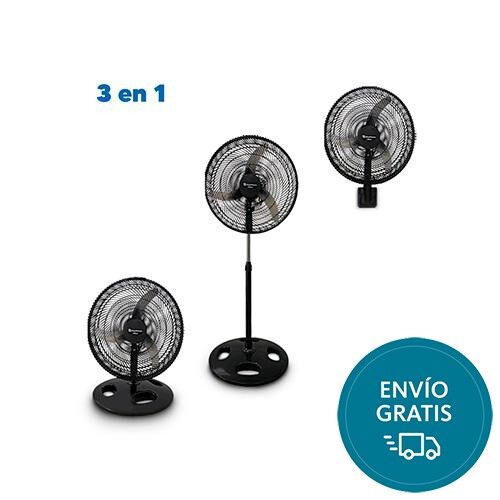 Ventilador 20 3 en 1: pie pared y turbo. 3 Aspas metalicas tipo Avion. Parrilla plastica negra. Motor reforzado 90w. Barral telescopico metalico. Base redonda. 3 velocidades. Cabezal oscilante.