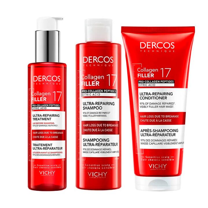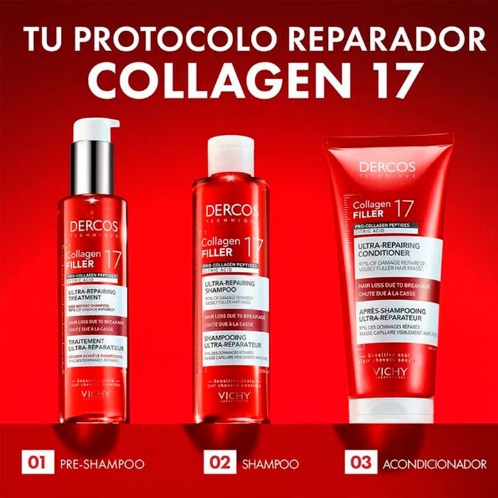 Combo Dercos Aminexil Serum Regenerador Capilar Vichy 90ml Código: 3337875932080 | SKU: 002210 Vichy Dercos Collagen Filler 17 Pre Shampoo Fortalecedor Código: 3337875920902 | SKU: 002211 Vichy Dercos Collagen Filler 17 Acondicionador Fortalecedor Código: 3337875920971 | SKU: 002213 El Sistema Ultra...