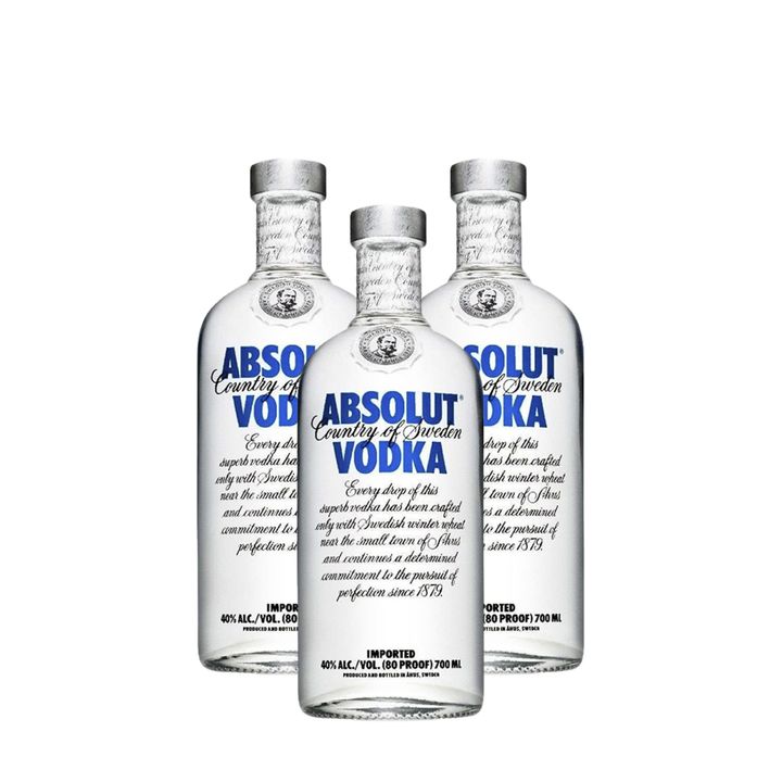 Incluye: 3 Botellas de Vodka Absolut Blue 700 ml