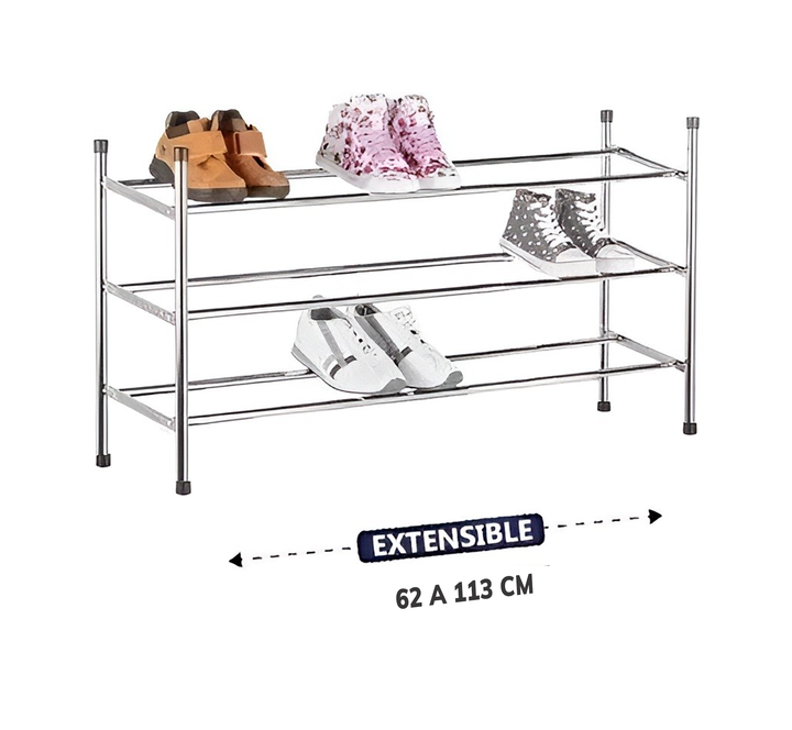 HOGAR ACTUAL ZAPATERO EXTENSIBLE 3 ESTANTES ACERO SKU: 142581 Organiza tu calzado de manera eficiente con el Mueble Botinero Extensible 3 Estantes de Hogar Actual, es ideal para mantener tus zapatos y zapatillas en perfecto estado. tiene una capacidad para 15 pares de calzado, permitiendo que tu col...
