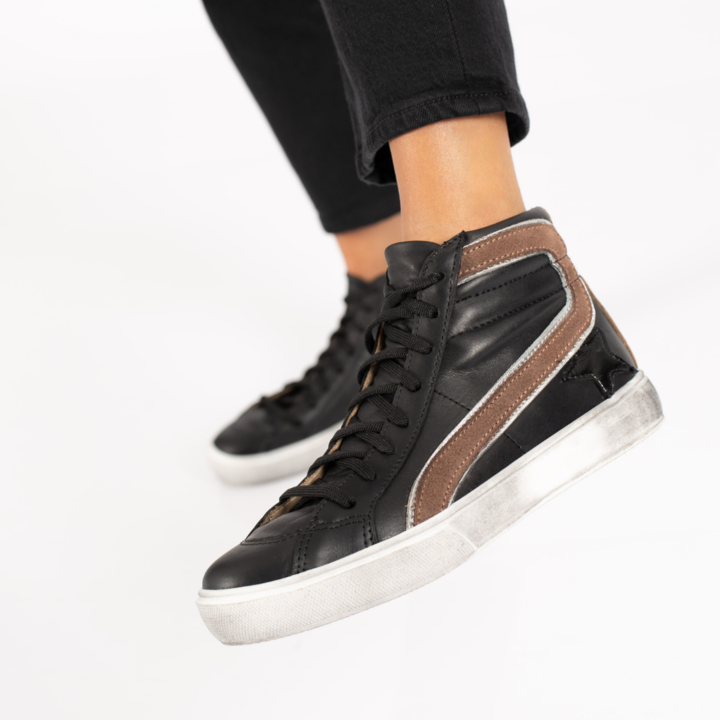 Presume de look sporty chic derrochando estilo con estos botines deportivos con toques metalizados. ¡Moda en estado puro! - Base: Goma - Material Interno: Cuero - Material Externo: Cuero - Articulo: MCZP05330 - Horma: Estándar - Marca: Briganti - Altura Taco: 3 cm. - Altura Caña: 10 cm.