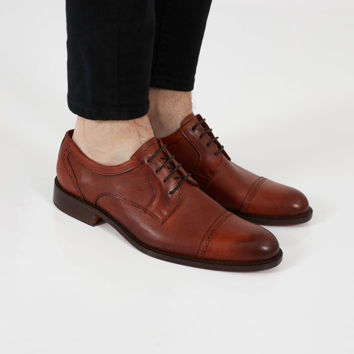 Zapato Estocolmo para hombre en cuero suela de primera calidad. Un diseño tradicional con punta redonda. Su diseño incluye cordones y detalle de punteado perforado. Los zapatos perfectos para un largo día de trabajo o cualquier otra ocasión de etiqueta. - Base: Suela - Material Interno: Cuero - Mate...