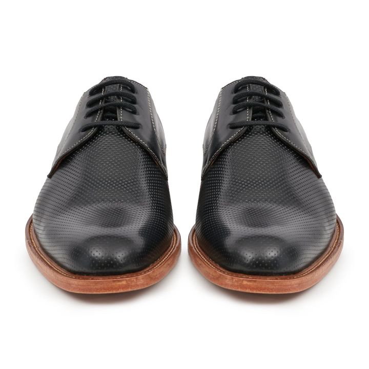 Zapatos para hombre fabricados en cuero negro de primera calidad. Este calzado rebosan personalidad. Incluyen atractivos detalles de picado y suela de color claro. Cálzate los zapatos Monaco tanto con unos jeans como con un elegante traje a juego. - Base: Suela - Material Interno: Cuero - Material E...