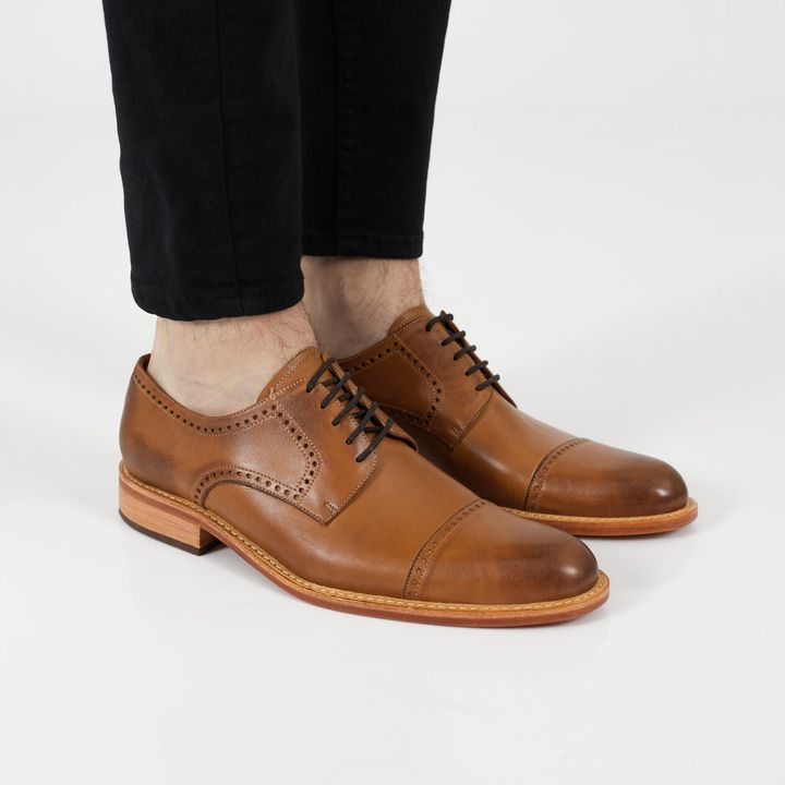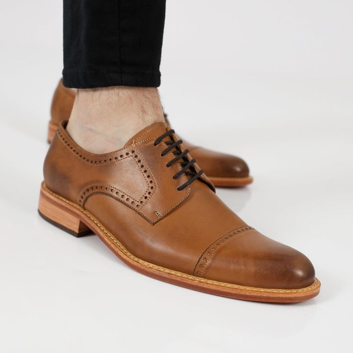 Zapato fabricado en cuero genuino de primera calidad. Su diseño incluye base clara de suela en contraste, cordones, detalle de punteado perforado en sus laterales y punta partida. Varsovia, perfectos para el trabajo y ocasiones formales. - Base: Suela y Suelin de Goma - Material Interno: Cuero - Mat...