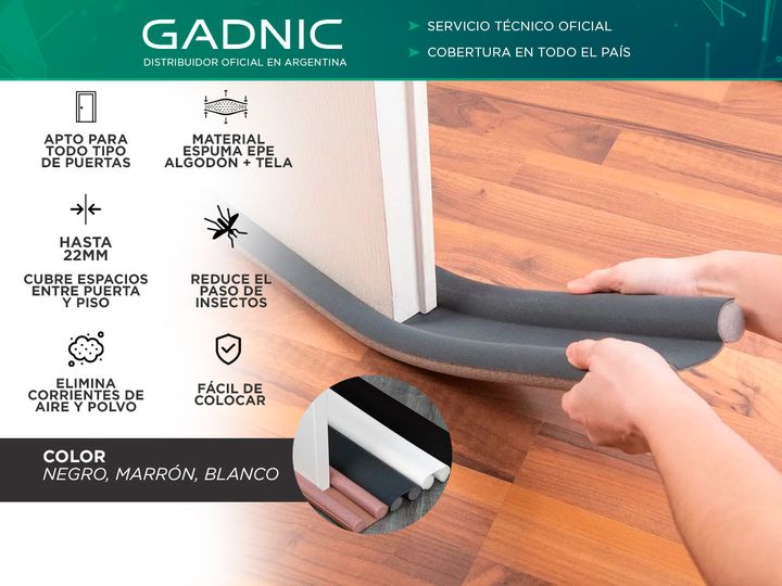 Nuevo Zócalo Burlete para puerta de Gadnic El zócalo doble de Gadnic se coloca en segundos sin necesidad de atornillarlo ni pegarlo. Evita la pérdida de calefacción en invierno y mantiene la refrigeración del ambiente en verano, generando ahorro energético todo el año. Ideal para mantener tu puerta ...