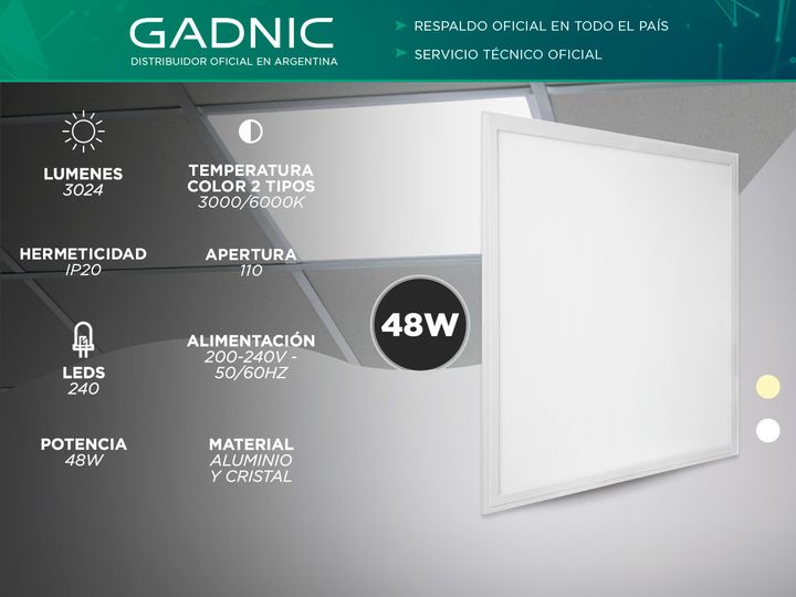 Renueva la iluminación de tu hogar u oficina con estos plafones empotrables LED de 48W, que ofrece luz cálida adaptándose a cualquier ambiente según lo necesites. Fabricados con un cuerpo de aluminio resistente y tratado con propiedades antioxidantes, garantizan durabilidad y un diseño moderno. Su p...