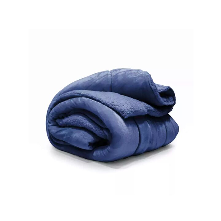 Acolchado flanel King Size, con corderito en el reverso. Color Azul Marino. Extra suave. 100 % Poliéster. Medidas: 2,40 mts x 2,70 mts.