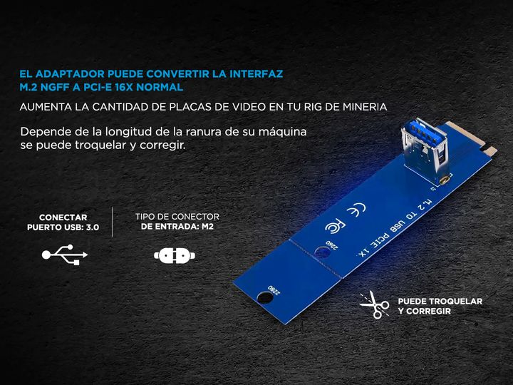 Convierte la interfaz M.2 NGFF a una conexión PCI-E 16X estándar con nuestro adaptador de alta calidad. Este adaptador cuenta con dos orificios de fijación en el tablero, compatibles con tamaños de 22 x 60 mm y 22 x 80 mm. Dependiendo de la longitud de la ranura en tu dispositivo, puedes ajustarlo f...