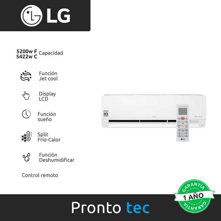 COMPRESOR DUAL INVERTER Disfrutá de ambientes más fríos o calientes más rápidos, con menos ruido y que se mantienen por más tiempo gracias al compresor dual inverter de LG. Obtené hasta un 70% de ahorro de energía gracias al ajuste constante de la velocidad para mantener los niveles de temperatura d...