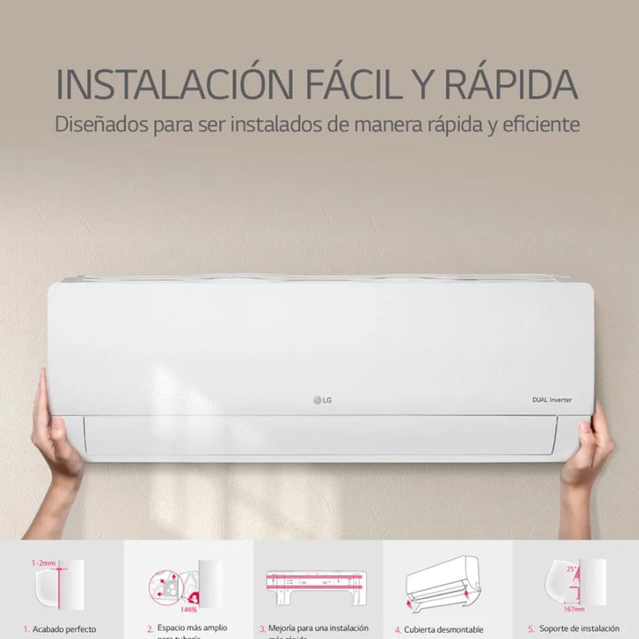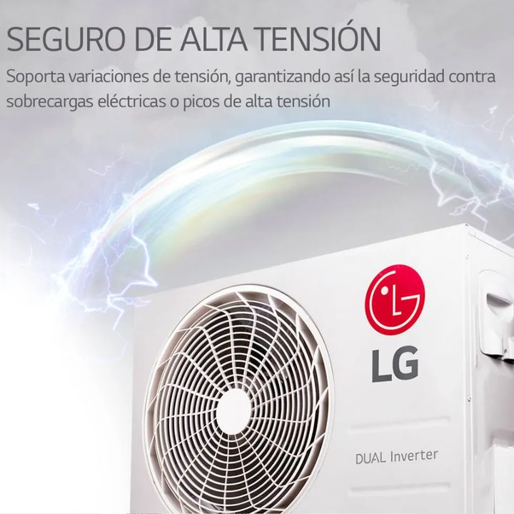 Aire Acondicionado 3500W Dualcool Inverter Color Blanco LG -Compresor Dual Inverter 10 años de garantía -Hasta 70% ahorro energético y hasta 40% enfriamiento rápido -WiFi LG THINQ -Seguro de Alta Tensión -Instalación Fácil y Rápida -Limpieza Automática CARACTERÍSTICAS GENERALES Tipo: Split Color: Bl...