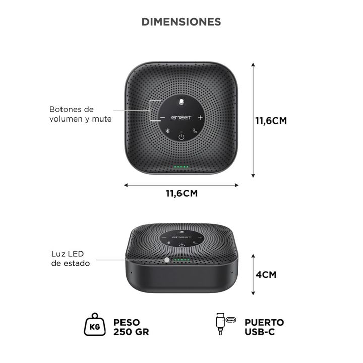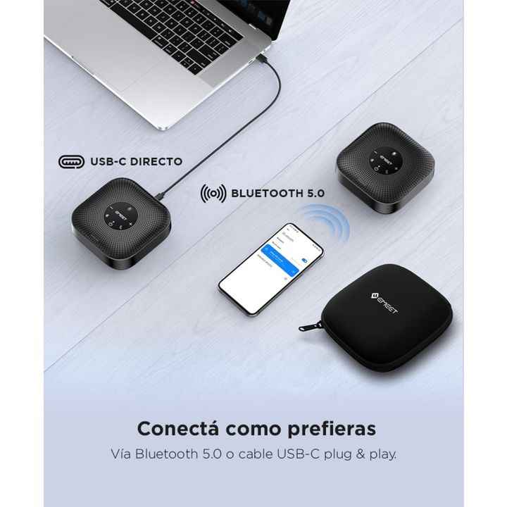 Captación de voz omnidireccional: 4 micrófonos AI integrados con cobertura 360° para que todos sean escuchados. Cancelación de ruido inteligente: VoiceIA 4.2 elimina eco y ruidos ambientales para una llamada más clara. Conectividad flexible: USB-C para conexión directa o Bluetooth 5.0 para reuniones...