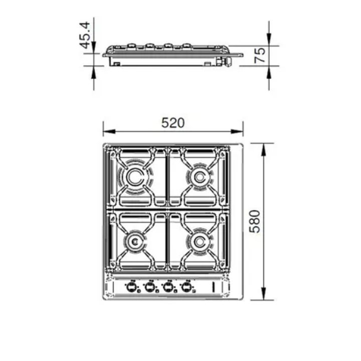 - Eficiencia energética A+ - Multigas. - Rejas de varilla de hierro, enlozadas con proceso Vitroplus. - 4 hornallas de tres diferentes potencias para optimizar su uso. - Válvula de Seguridad en hornallas. - Plancha de acero inoxidable. - Encendido a una mano. - Encastrable, se integra a la mesada si...