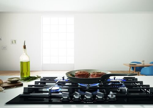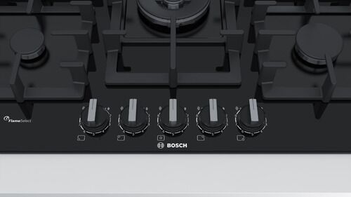 Anafe de Gas Bosch PPQ7A6B90 5 Hornallas Serie 6 75cm **CARACTERÍSTICAS** - FlameSelect: para un ajuste preciso de la llama en nueve niveles definidos. - Anafe de gas en cristal templado: disfruta de un diseño vanguardista y fácil de limpiar. - Quemador wok: para cocinar con mucha potencia, hasta 4,...