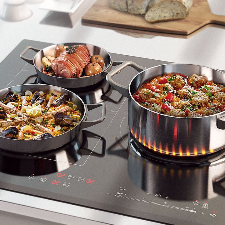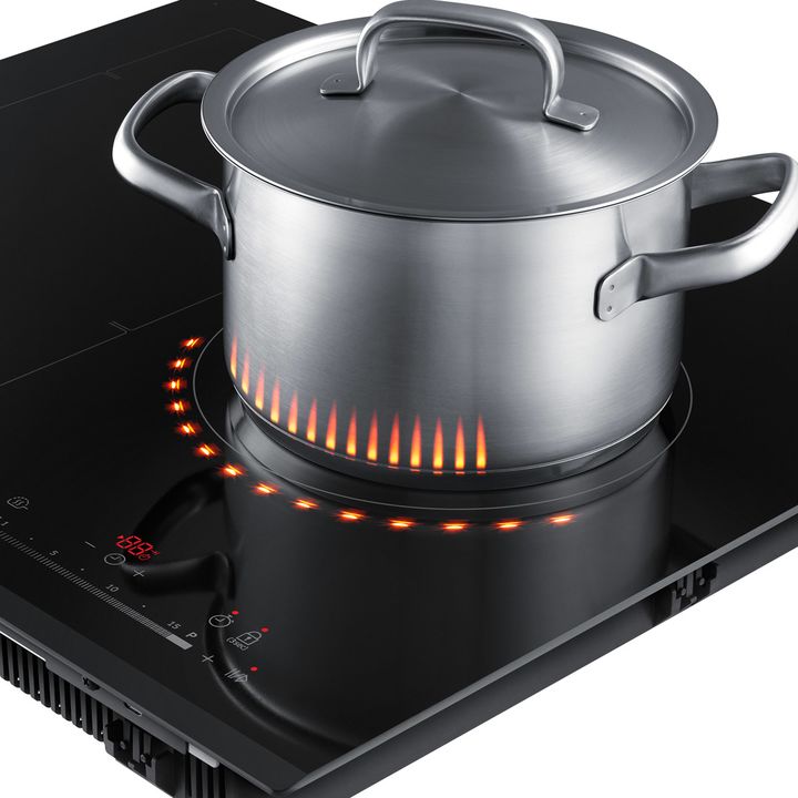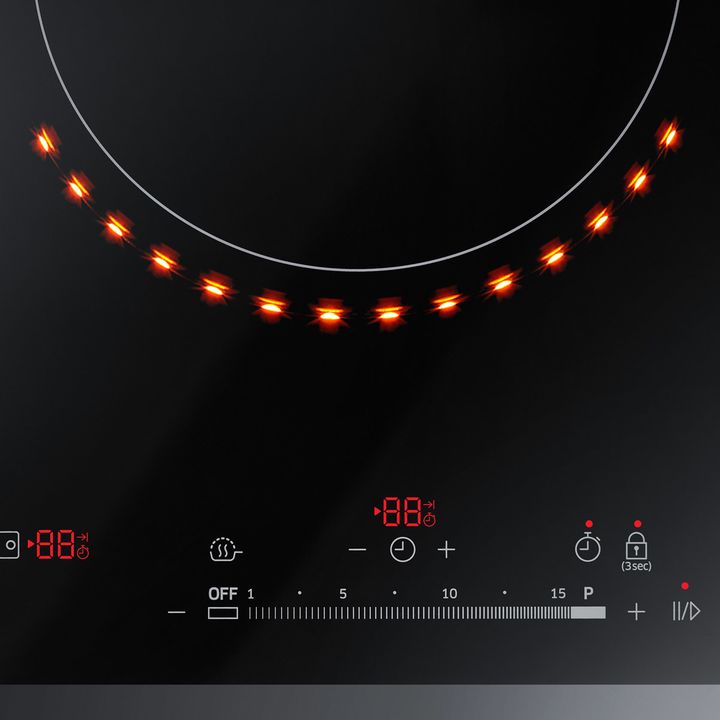 MUESTRA CLARAMENTE SI EL ANAFE ESTÁ ENCENDIDO O APAGADO Con Virtual Flame Technology™ podés disfrutar de un control visual intuitivo y ver claramente si el anafe está encendido o apagado. La iluminación LED en frente de una de las zonas de cocción se ilumina como una llama de gas real para mostrar q...