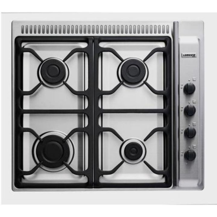 ESPECIFICACIONES: Eficiencia energética: A Colocación Encastrable Hornallas: 4 Válvulas de seguridad en hornallas: Si Rejas de hierro fundido: Si Encendido eléctrico: Si Ventilación para horno bajo-mesada: Si
